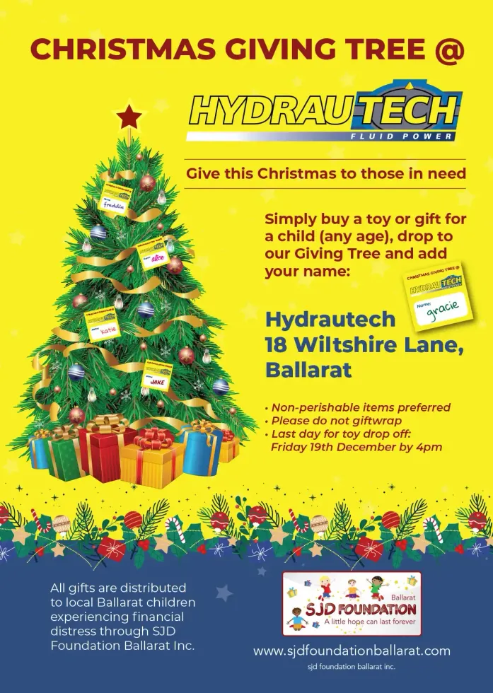 We have partnered with SJD Foundation Ballarat Inc this December for our Hydrautech Giving Tree.